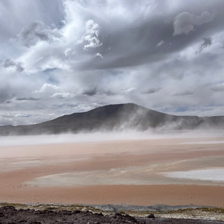 Puis nous dĂ©couvrons des geysers situĂ©s Ă quasi 5 000 m dâaltitude. Ceux-ci sont dâautant plus impressionnants que nous pouvons nous en approcher de trĂšs prĂšs... ici aucune mesure de sĂ©curitĂ©!