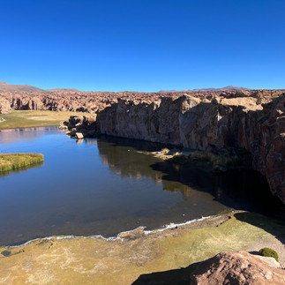 Nous commençons par marcher au abords de la Laguna Hedionda, une lagune aux odeurs de soufre peu agréable mais oraux reflets incroyables.