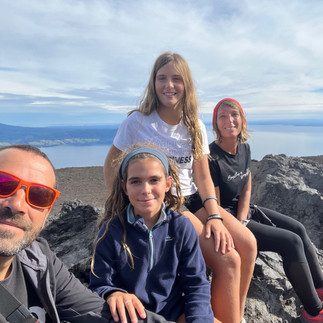 Après avoir repris des forces, nous commençons une balade sur les flancs du volcan. Le paysage est lunaire. Il n’y a rien sauf de la roche volcanique à perte de vue et le sommet enneigé dans le fond.