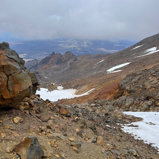 Le lendemain, nous décidons de partir faire une belle randonnée dans les volcans. Nous arrivons sur le site de départ de l’ascension du Mont Tongariro, mais là, nous rencontrons une quinzaine de marcheurs qui redescendent, la mine un peu triste, l'air frigorifiés! Nous apprenons que les conditions météo sont vraiment trop mauvaises la haut, ils nous déconseillent fortement de monter.